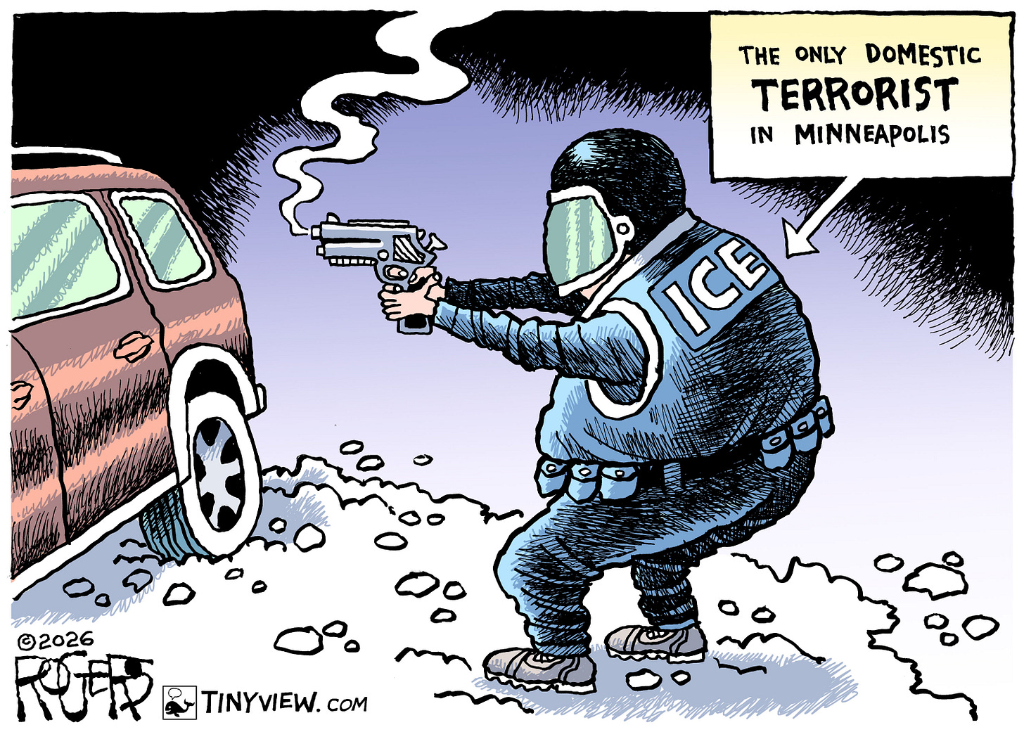 So let the record show: in 2026 America, you can help storm Congress, assault police officers, and get a presidential pardon, but stand peacefully on your own block, and you may be posthumously branded a terrorist by the same people who insist this is all about “law and order.”