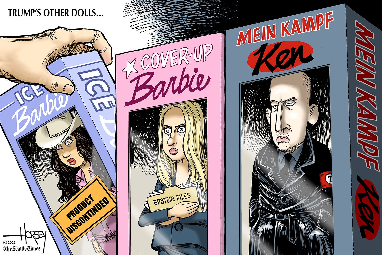 TWO "appalling, disgusting, revolting, and all too true" awards today: Steve Sack, and Nick Anderson. And we're only a little over 1/4 of the way through the 47 regime.