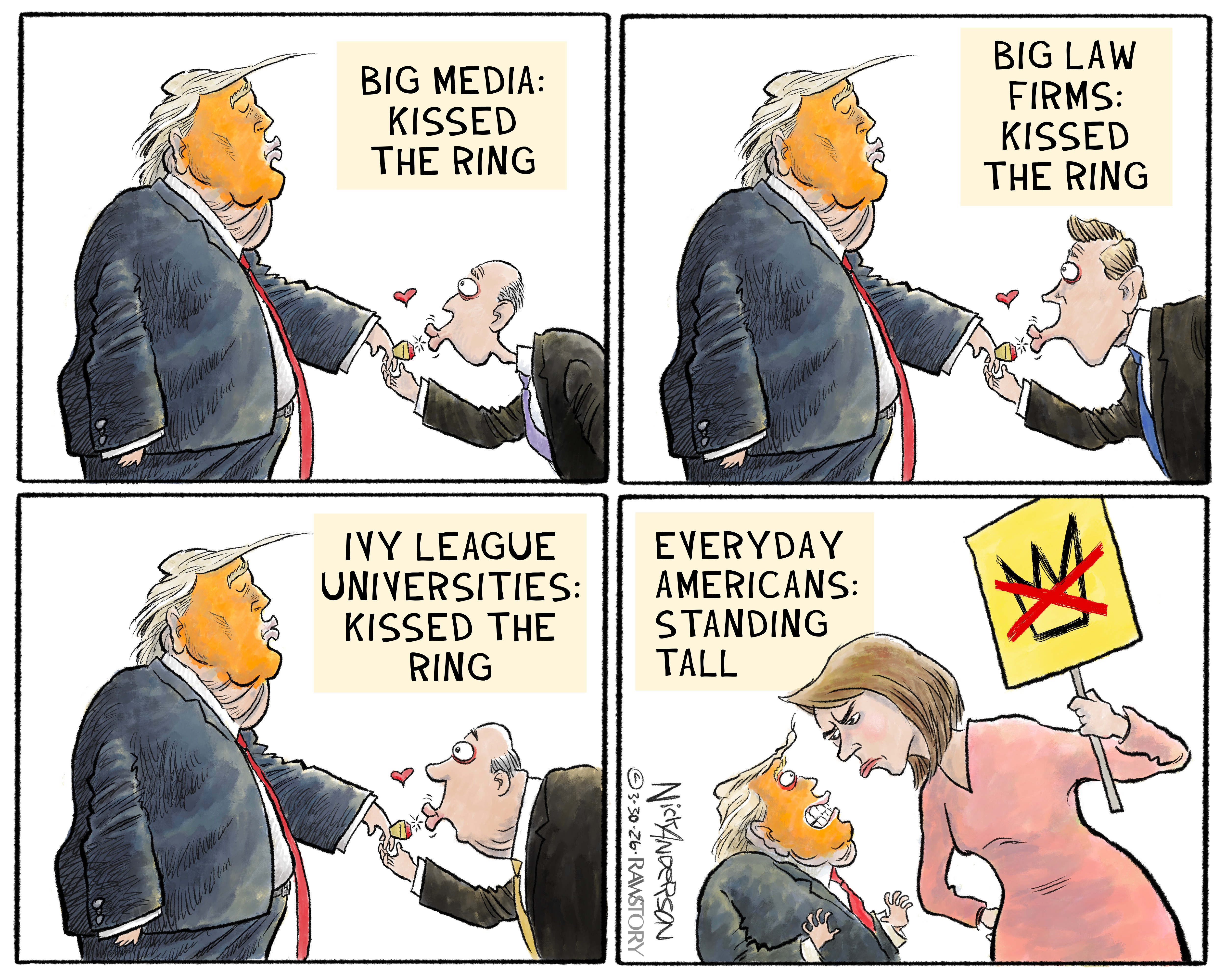 In Minnesota, crowds denounced both the war and the administration’s immigration raids, while Bruce Springsteen showed up to remind everyone that when you’ve lost Bruce Springsteen, you’re no longer leading a political movement, you’re captaining a national embarrassment.